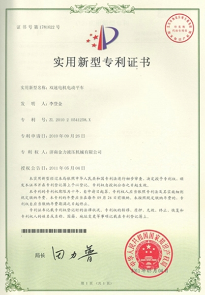 实用新型专利证书